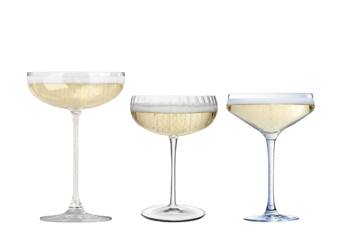 Le champagne – ou tout autre vin mousseux – se déguste de préférence dans un verre spécialement conçu à cet effet. Cela n'est pas seulement lié à la tradition et à l'apparence, mais aussi à l'expérience gustative. La flûte élancée aide à conserver les bulles plus longtemps et concentre les arômes vers le nez, ce qui permet de profiter pleinement de la fraîcheur et de la finesse. La coupe à champagne a une forme plus large et moins profonde et offre une expérience plus ouverte. Bien que les bulles s'estompent un peu plus rapidement, le caractère des champagnes plus riches est magnifiquement mis en valeur. De plus, les coupes sont particulièrement appréciées comme verres à cocktail élégants pour des classiques tels que l'Espresso Martini ou le Pornstar Martini.